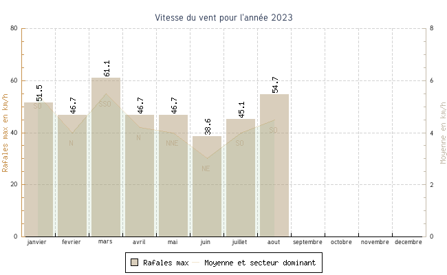| aout | 10.1 °C | 13.9 °C | 27.8 °C | 23.0 °C | 17.8 °C | 4.5 km/h | 54.7 km/h | SO |
