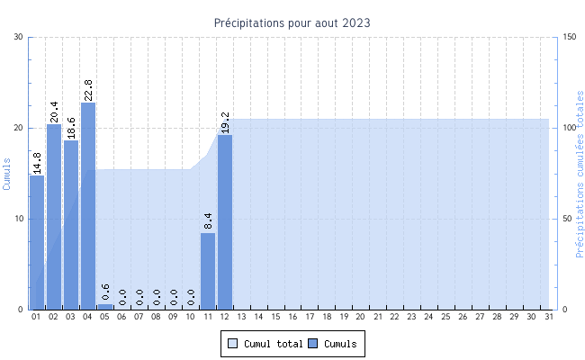 | 08 | 12.7 °C | 23.9 °C | 18.2 °C | 2.0 km/h (22.5 km/h) | SO |